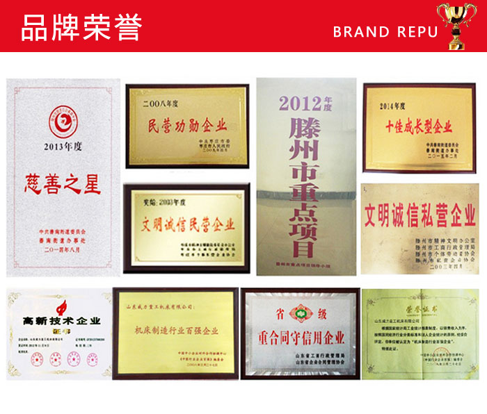 山東威力重工機(jī)床有限公司歷經(jīng)數(shù)十年年的改革與發(fā)展,威力重工取得了不計(jì)其數(shù)的榮譽(yù),包括政府組織機(jī)構(gòu)評選頒發(fā)的各類證書,媒體和市場研究機(jī)構(gòu)的獎項(xiàng),公眾通過正式和非正式渠道對企業(yè)的贊許等等。這些榮譽(yù)是社會和公眾對山東威力重工機(jī)床有限公司的獎勵,是廣大消費(fèi)者對威力重工產(chǎn)品的認(rèn)可,是山東威力重工優(yōu)良口碑的見證。