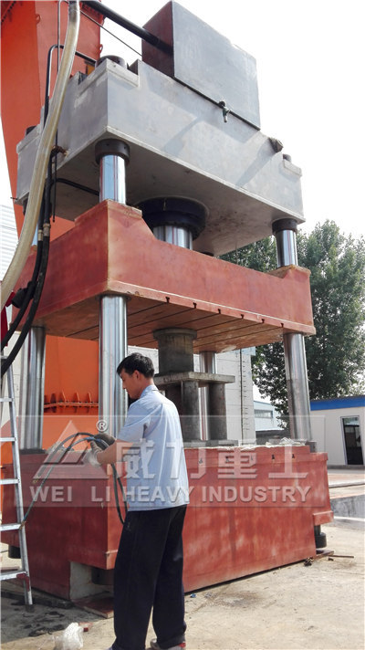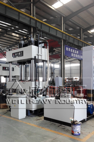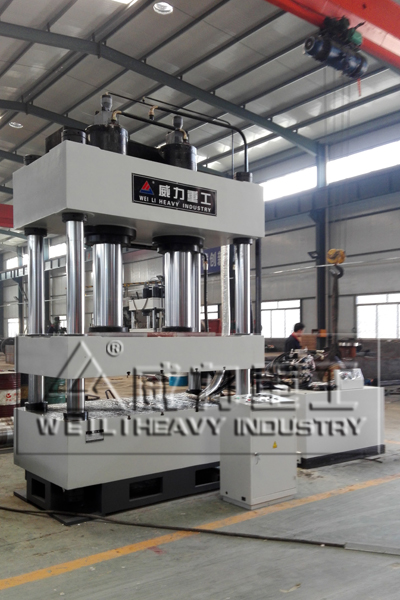 液壓機(jī)由主機(jī)及控制機(jī)構(gòu)兩大部分組成。液壓機(jī)主機(jī)部分包括機(jī)身、主缸、頂出缸及充液裝置等。動(dòng)力機(jī)構(gòu)由油箱、高壓泵、低壓控制系統(tǒng)、電動(dòng)機(jī)及各種壓力閥和方向閥等組成。動(dòng)力機(jī)構(gòu)在電氣裝置的控制下,通過泵和油缸及各種液壓閥實(shí)現(xiàn)能量的轉(zhuǎn)換,調(diào)節(jié)和輸送,完成各種工藝動(dòng)作的循環(huán)。液壓缸:將液壓能轉(zhuǎn)化為機(jī)械能液壓傳動(dòng)是利用液體壓力來(lái)傳遞動(dòng)力和進(jìn)行控制的一種傳動(dòng)方式。液壓裝置是由液壓泵,液壓缸,液壓控制閥和液壓輔助元件。山東威力重工機(jī)床有限公司根據(jù)客戶需求定制非標(biāo)液壓機(jī)。如下圖參考