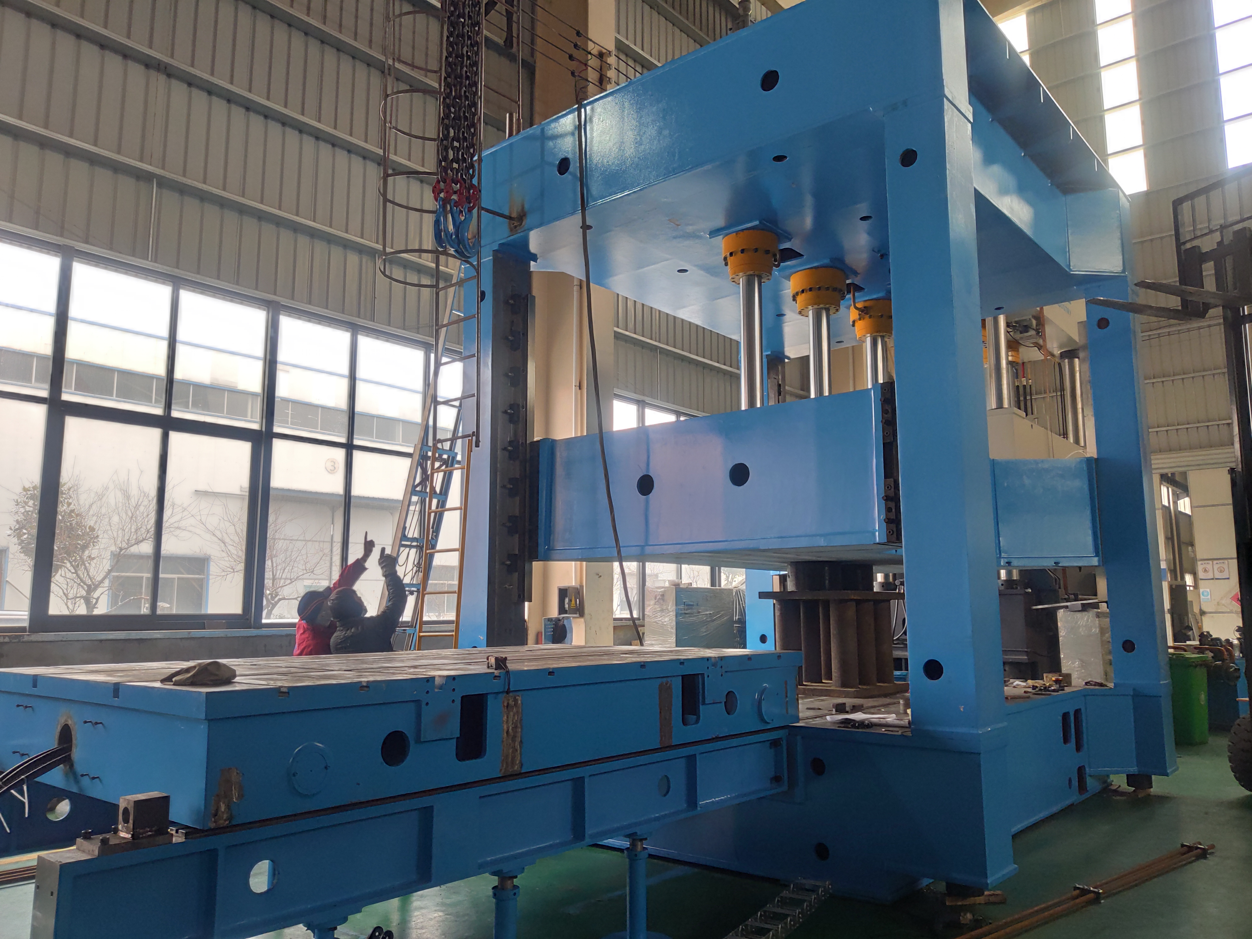 【產(chǎn)品描述】:一款專門為日本客戶定制的液壓機(jī),200噸框架式液壓機(jī)(油壓機(jī)、壓力機(jī))的移動式工作臺, 可用于金屬板材的拉伸成型、復(fù)合材料壓制成型、塑壓成型液壓機(jī)等。 這款液壓機(jī)帶有可移動式工作臺,包括下連接板,下連接板兩側(cè)固定連接有滑槽,左側(cè)滑槽上焊接固定有把手,滑槽上活動安置有上連接板,上連接板下側(cè)等距均勻滑動穿插有長桿,長桿另一端固定在下連接板上端,長